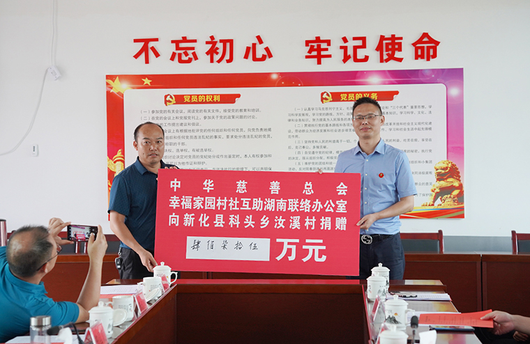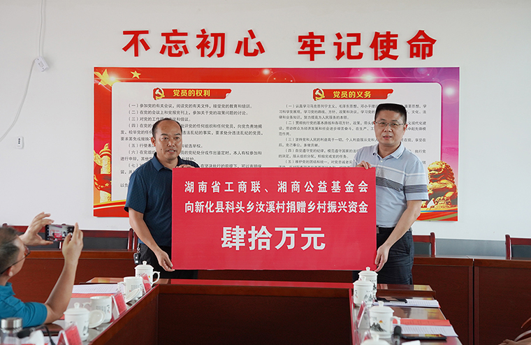 9月20日下午,在汝溪村召開了省工商聯(lián)對(duì)口幫扶新化縣鄉(xiāng)村振興座談會(huì),了解新化縣貫徹全國(guó)、全省“萬(wàn)企興萬(wàn)村”行動(dòng)推進(jìn)會(huì)精神落實(shí)情況,聽取新化縣委、縣政府以及省工商聯(lián)駐縣工作組、駐汝溪工作隊(duì)的有關(guān)工作匯報(bào)。現(xiàn)場(chǎng)進(jìn)行了公益捐贈(zèng)和項(xiàng)目簽約,湘商公益基金會(huì)、綠之韻集團(tuán)分別為汝溪村捐贈(zèng)鄉(xiāng)村振興幫扶資金40萬(wàn)元、13.5萬(wàn)元,中華慈善總會(huì)幸福家園村社互助湖南聯(lián)絡(luò)辦公室向科頭鄉(xiāng)捐贈(zèng)了一批價(jià)值475萬(wàn)元的醫(yī)療設(shè)備,懷化正好制藥有限公司與汝溪村的廣東紫珠項(xiàng)目進(jìn)行現(xiàn)場(chǎng)簽約。