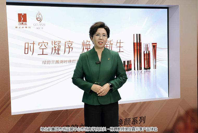 發(fā)布會伊始,綠韻蘭茜品牌概念片率先登場,細膩的視覺語言層層詮釋 “東植西萃” 的品牌哲學(xué),讓觀眾直觀感受東方之美與科學(xué)護膚的碰撞,拉開了本場新品直播發(fā)布會的序幕。綠之韻集團市場運營中心市場商學(xué)院院長·特聘教授侯俊霞作為首批產(chǎn)品體驗官從真實使用感受出發(fā),分享了新品獨特的膚感與卓越功效。