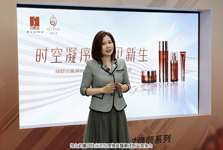 伴隨著綠韻蘭茜溯時煥顏新品宣傳片首度亮相,綠之韻集團總裁勞嘉、市場營銷中心總經(jīng)理戴三省、執(zhí)行總經(jīng)理梅其慧、常務(wù)副總經(jīng)理蔣文、市場運營中心國際商學(xué)院院長侯俊霞與劉天奇博士共同登臺,在璀璨的光影中為新品完成揭幕儀式。