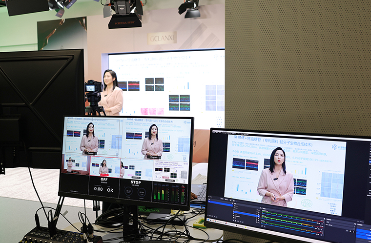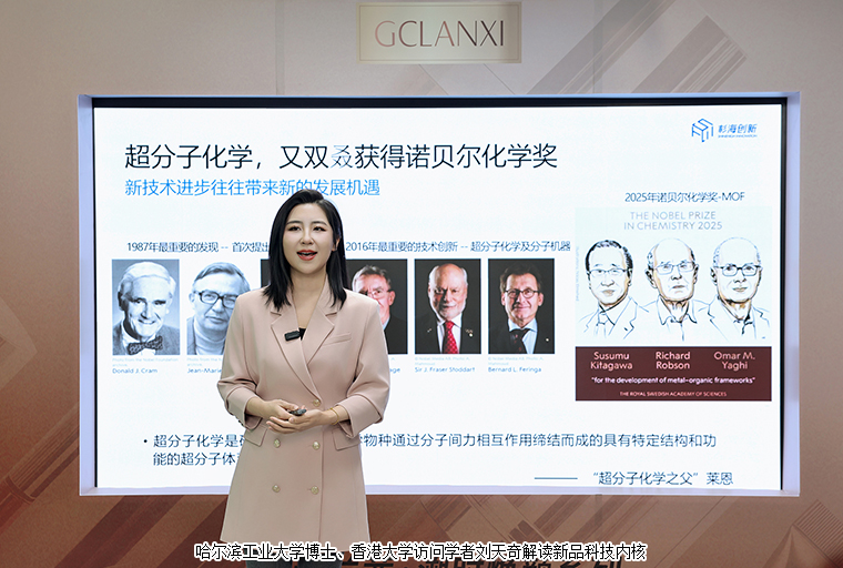 一段杉海技術(shù)短片緩緩揭開超分子技術(shù)的神秘面紗。哈爾濱工業(yè)大學(xué)博士、香港大學(xué)訪問學(xué)者劉天奇親臨直播間,以詳實的數(shù)據(jù)、生動的原理解析,全面展現(xiàn)超分子技術(shù)在成分促滲、活性保護、膚感優(yōu)化及穩(wěn)定性提升四大維度的突破,清晰勾勒出這項技術(shù)如何打破傳統(tǒng)護膚局限,讓活性成分真正直達肌底。技術(shù)解讀過后,綠之韻集團執(zhí)行總經(jīng)理梅其慧分享了超分子技術(shù)在產(chǎn)品市場上的競爭力,闡述品牌如何將科研成果落地為消費者可感知的護膚價值。
