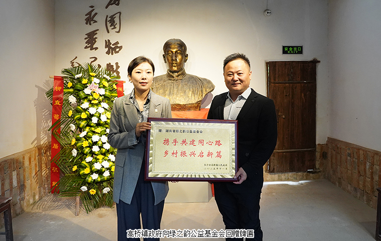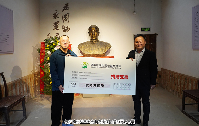 綠之韻公益基金會向長沙縣高橋鎮(zhèn)政府捐贈20萬元用于鄉(xiāng)村振興產(chǎn)業(yè)建設(shè),助力村鎮(zhèn)集體經(jīng)濟(jì)增長、改善鄉(xiāng)民生產(chǎn)生活環(huán)境,也將專項支持本地紅色文化的保護(hù)與傳承。